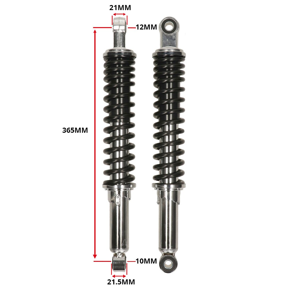Stötdämpare 365mm/12mm/10mm, krom/svart - Forsa MDI (Honda MT50/MB50)