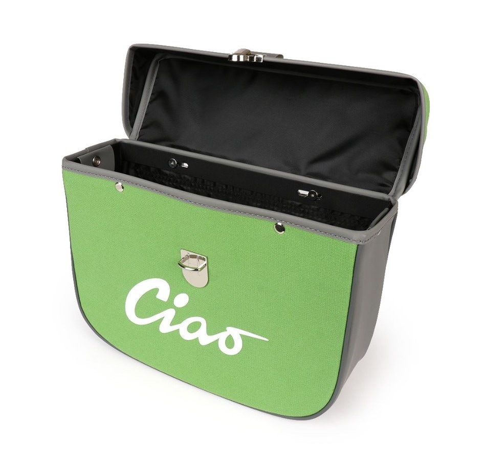 Snygg och högkvalitativ sidoväska i retrostil från Moto Nostra med Ciao-text samt justerbara krokar som gör den monterbar på alla modeller -1995.