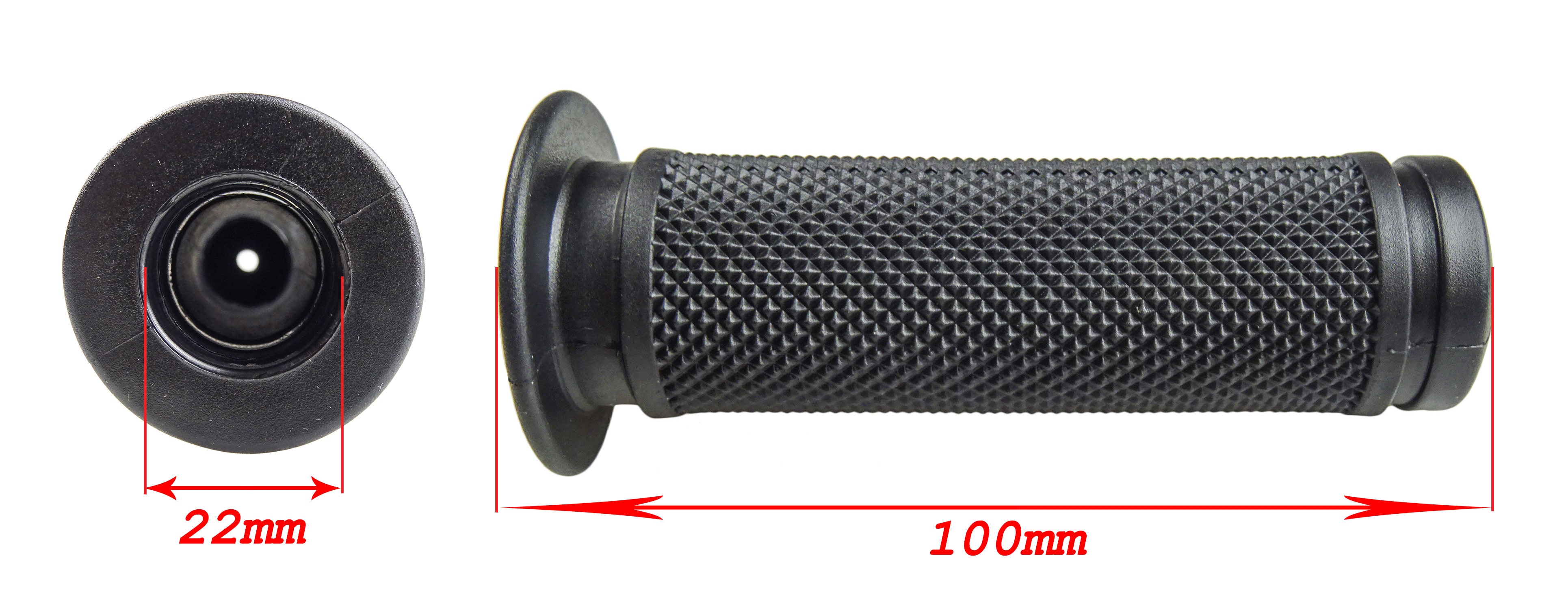 Svarta handtag i slitstarkt gummi som passar perfekt på styren med 22mm diameter.